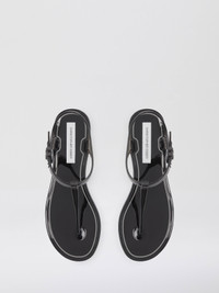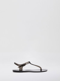 A minimalist flat that slips on with ease. Hand crafted in Italy made in a semi- transparent, jelly-like 100% PVC. Refined by a delicate T-bar strap and ankle buckle fastening. Please note, this style runs small. We recommend sizing up a full size. - Made in Italy - Water resistant - Jelly-like texture - Slip on style - T-bar strap - Ankle buckle fastening - 100% PVC - EU sizing Due to the structured nature of the PVC, the Billi T-Bar Flat may require a firmer hand when loosening the ankle strap. Alternatively, this style may be slipped on without unfastening for faster ease of wear.