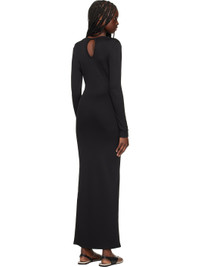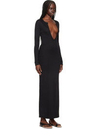 Stretch polyester ribbed jersey maxi dress. · Plunging V-neck · Slit at side seam · Keyhole at back collar Supplier color: Black 96% polyester, 4% spandex. Made in Viet Nam 251311F055021