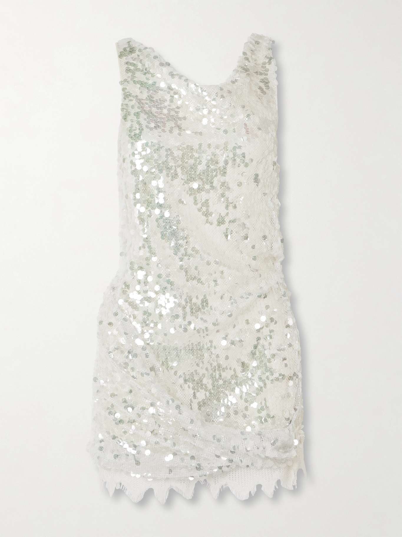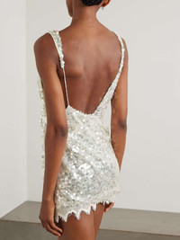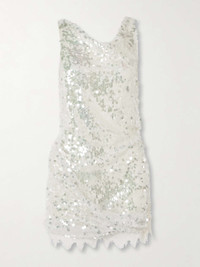 EDITORS'NOTES Christopher Esber is so good for party dresses. This mini is made from mesh that's drenched with glistening, opaline sequins and has a jagged cotton-blend lace hem and slightly asymmetric neckline that feel just effortless. Style yours with shimmery eye shadow and heeled sandals. DETAILS & CARE - White sequined mesh, cream cotton-blend lace - 100% polyester; trim1: 97% cotton, 3% polyamide; trim2: 100% silk; lining: 65% nylon, 35% elastane - Slips on - Designer color: Glisten Clear