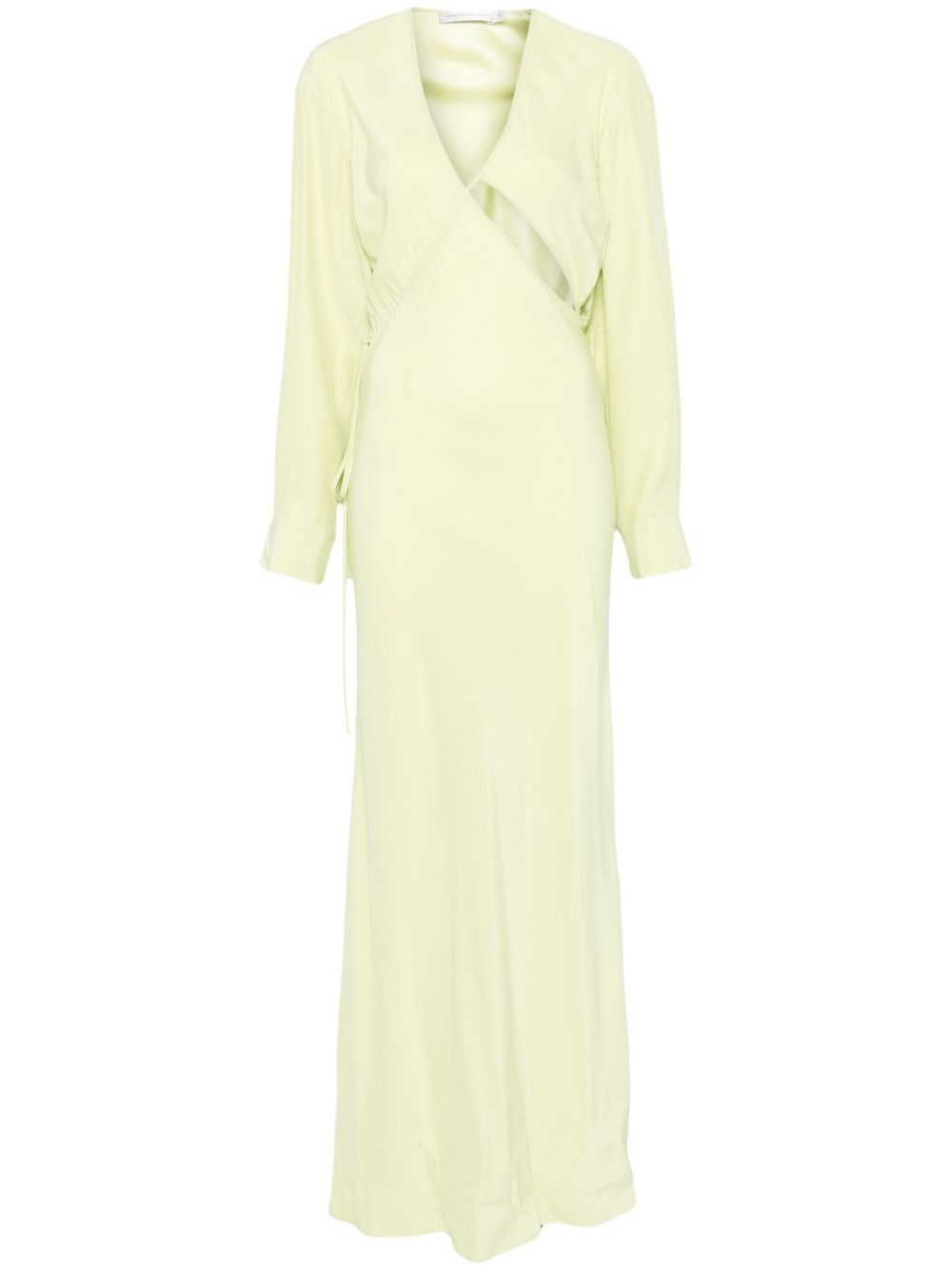 cross-cut silk maxi dress Highlights - Light green - Self-tie fastening - Buttoned-cuff sleeves - V-neck - Unlined Imported Composition Silk 100% SIZE & FIT Model measurements Height 5 ft 11 in(1.8 m) Bust/Chest 31.49 in(80 cm) Hips 36.61 in(93 cm) Waist 24.4 in(62 cm) FittingInformation Designed for a loose fit at the chest with a close fit over the waist and hips The adjustable drawstring means that you can adjust this piece’s fit to suit your comfort and preference Made from a lightweight non-stretch fabric