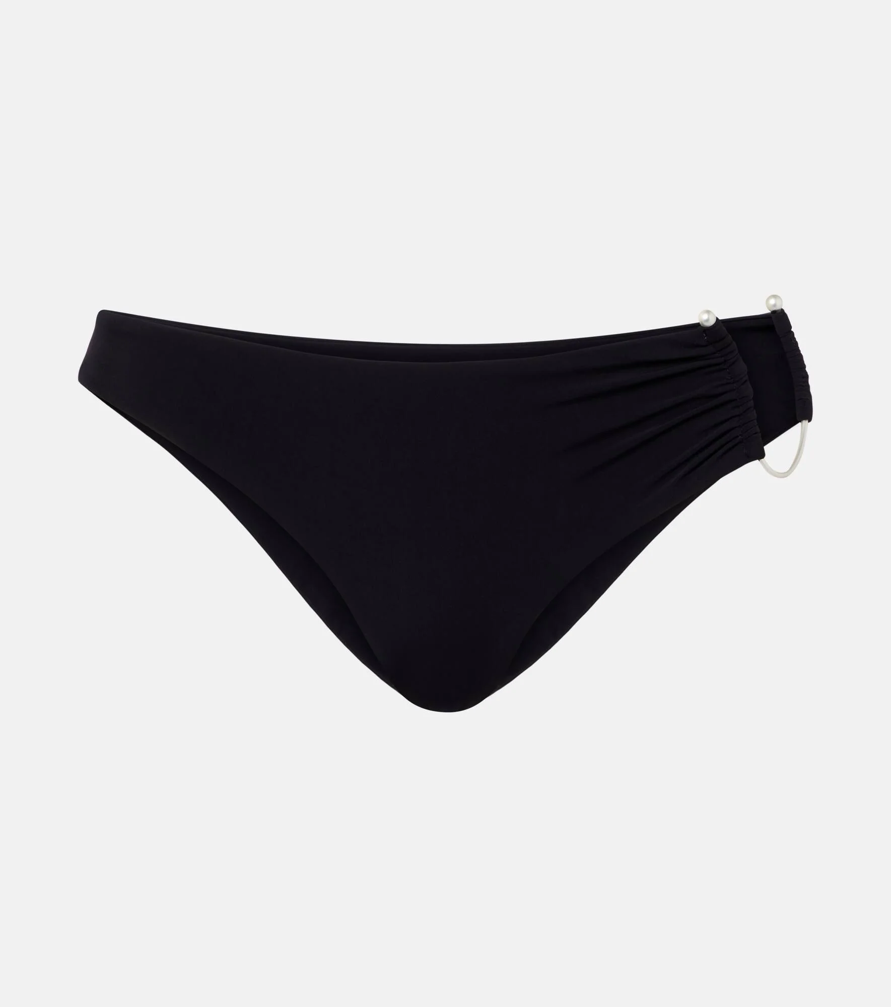 Christopher Esber's sensual cuts and sculptural hardware make for a contemporary twist on minimalism. These bikini bottoms are defined by ruching at the side, complemented by a statement-making, curved cutout held together by a pearl-embellished hardware anchor. Product Details - Material: 72% polyamide, 28% elastane - Care instructions: hand wash - Made in China - Designer color name: Black - Item color: black - Item number: P01038046 Size & Fit - True to size - Minimal coverage - Medium-cut leg - The model seen in the picture is 178cm-5'10" and wearing a size UK 8