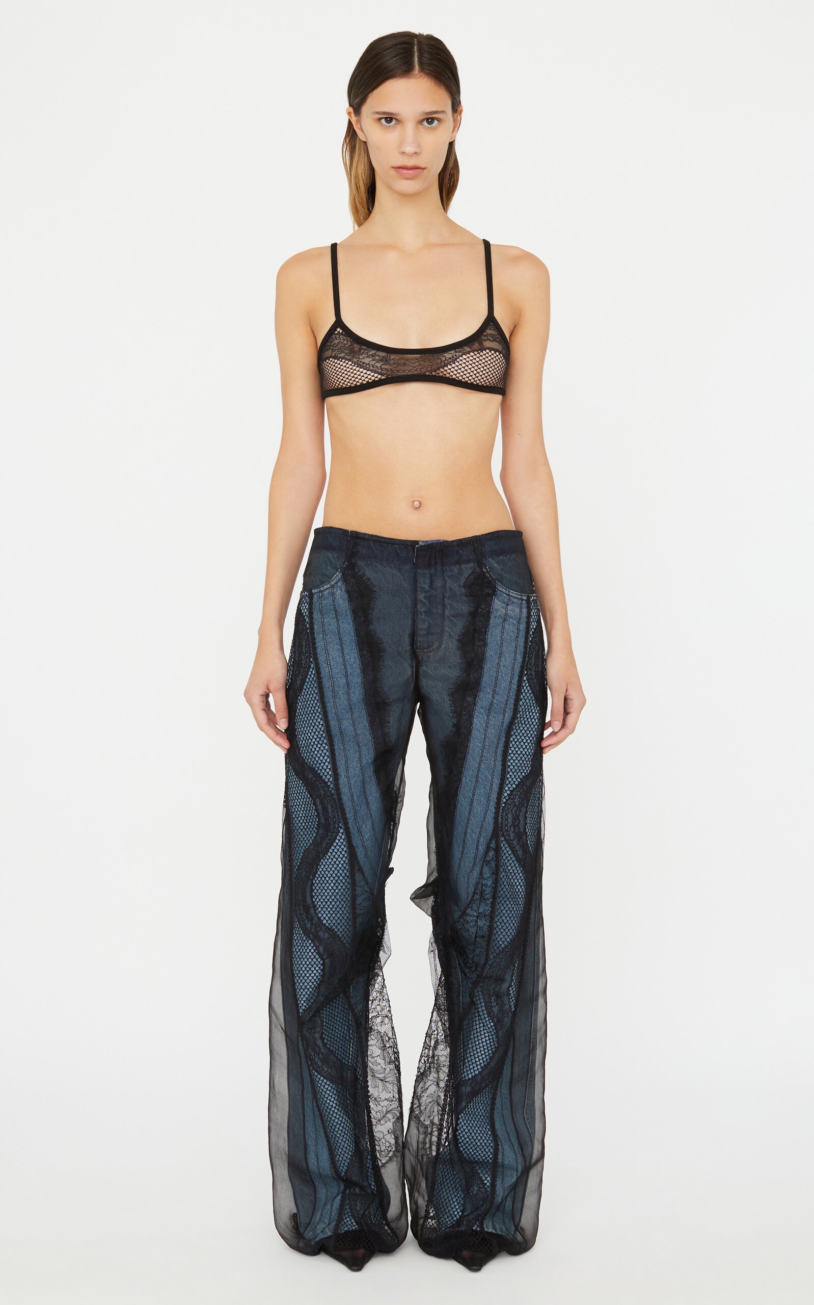 PRODUCT DETAILS - Oversized fit, low rise, encased lace detailing throughout - Button and Zip Fastening - Lined - Composition: 72% Polyamide 28% Cotton, 100% Cotton, 100% Silk, 51% Polyamide 49% Cotton - Color: black - Dry Clean Only - Spring '25