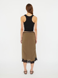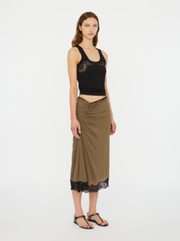 Codes of everyday wear spark curiosity through fine rib that stretches with ease to the body whilst curved lace inserts organically trace across the bust. - Fitted tank silhouette - Curved lace inserts at bust - Fine stretch rib structure - Scoop neckline - Main: 97% Viscose 3% Elastane - Lace: 65% Polyamide, 20% Polyester, 15% Elastane - Dry Clean Only Model is 179cm/5'10.5" and wears size AU 8 (US 4) AU sizing