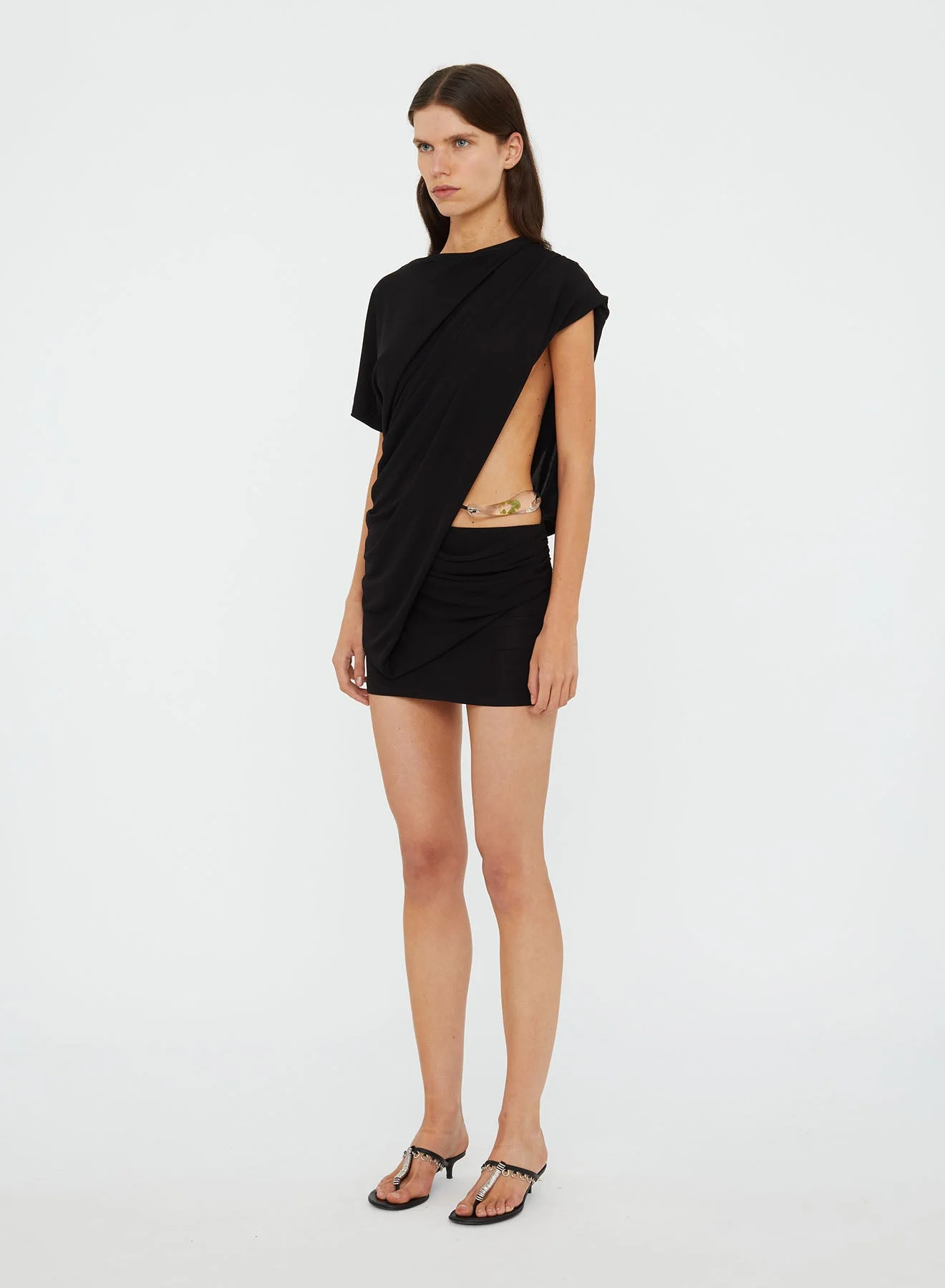 Crafted in stretch jersey for ease and movement, the Encased Nature Resin Draped Jersey Dress is designed to drape diagonally across the body - exposing a single shoulder and the waist. Resin encased maidenhair fern embellishment punctuates the side cut-out, suspended on fine cord for a sculptural finish. - Asymmetric silhouette with single short sleeve - Side cut-out with ruched drape across the body - Glass and resin embellishment suspended on fine cord - Designed for a close fit with stretch - Mini length - Pull-on style - Encased maidenhair fern detailing - Soft ruching through hip - Main: 100% Viscose - Hardware: 100% Resin - Dry Clean Only Model is 180cm/5'11" and wears size AU 8 (US 4) AU sizing