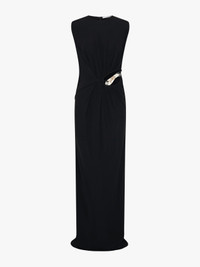 Crafted in slinky viscose jersey, this Encased Nature Suspended Jersey Tank Dress features sculptural draping through the body with a gathered cutout at the waist. A signature Christopher Esber cut out is framed by clear resin hardware, encasing preserved maidenhair fern. The silhouette falls straight with a relaxed waist and subtle contouring through the skirt. - Maxi silhouette with fitted skirt - Organic cutout at waist - Draped jersey construction - Resin droplet hardware - Embedded botanical elements - Main: 100% Viscose - Hardware: 100% Resin - Dry Clean Only Model is 180cm / 5'11" and wears size AU 8 (US 4) AU sizing