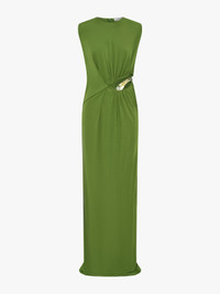 Crafted in slinky viscose jersey, this Encased Nature Suspended Jersey Tank Dress features sculptural draping through the body with a gathered cutout at the waist. A signature Christopher Esber cut out is framed by clear resin hardware, encasing preserved maidenhair fern. The silhouette falls straight with a relaxed waist and subtle contouring through the skirt. - Maxi silhouette with fitted skirt - Organic cutout at waist - Draped jersey construction - Resin droplet hardware - Embedded botanical elements - Main: 100% Viscose - Hardware: 100% Resin - Dry Clean Only Model is 180cm / 5'11" and wears size AU 8 (US 4) AU sizing