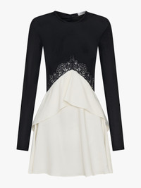 Pragmatic & feminine details combine to form the Endrey Disconnect Back Mini Dress. Fine rib stretches with ease to the body, whilst sheer lace traces the torso. The stretch ribbed jersey bodice is spliced with a lace-trimmed cut-out at the waist, moving into a tiered skirt in crisp ivory crepe. A ruched back panel frames an open back. - Mini silhouette - Lace-trimmed waist cut-out - Tiered crepe skirt - Ruched back with exposed cut-out - Bodice: 100% Viscose - Skirt: 100% Polyester - Contrast Lace: 100% Nylon - Dry clean only Model is 180cm/5'11" and wears size AU 8 (US 4) AU sizing