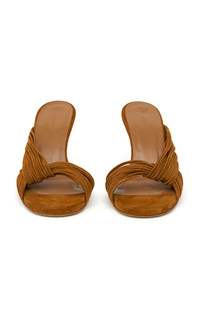 PRODUCT DETAILS - Heeled mule silhouette, suede body, twisted leather strands detail at toe, round toe, adjustable design - Slip on - Composition: suede - Made in Italy
