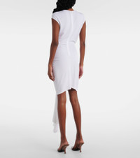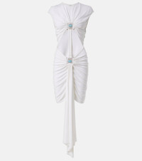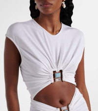 Christopher Esber's sensual cuts and sculptural hardware make for a contemporary twist on minimalism. This cutout jersey minidress features gathering that shapes the body and a cascading front draping, decorated with the brand's signature crystal quartz bezel hardware. Product Details - Material: 100% viscose - Care instructions: dry clean - Made in India - Designer color name: Chalk - Item color: white - Item number: P01033971 Size & Fit - True to size - Fitted - Stretchy fabric - The model seen in the picture is 178cm-5'10" and wearing a size UK 6