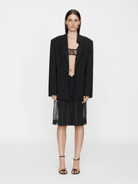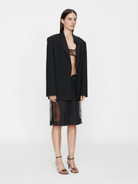 A reinterpretation of the classic skirt through the lens of board-short construction. Cut in lightweight cotton with sheer lace side panels, it features exposed hip cut-outs and a functional drawcord front. A contrast of utility and delicacy, anchored by a low-slung waistline. Style with sculpted tailoring or slinky jersey for a directional contrast. - Low-waisted skirt with lace side panels - Exposed hip cut-outs with drawcord front tie - Mid-length silhouette - Technical fabric base with sheer lace contrast - Clean hem finish - Main: 100% Cotton - Contrast: 63% Polyamide 37% Viscose - Dry Clean Only Model is 180cm/5'11" and wears size AU 8 (US 4) AU sizing