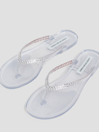 A minimalist tonal flip flop that slips on with ease. Hand crafted in Italy made in a semi- transparent, jelly-like 100% PVC. Please note, this style runs small. We recommend sizing up a full size.  - Made in Italy - Water resistant - Jelly-like texture - Slip on style - 100% PVC - EU sizing