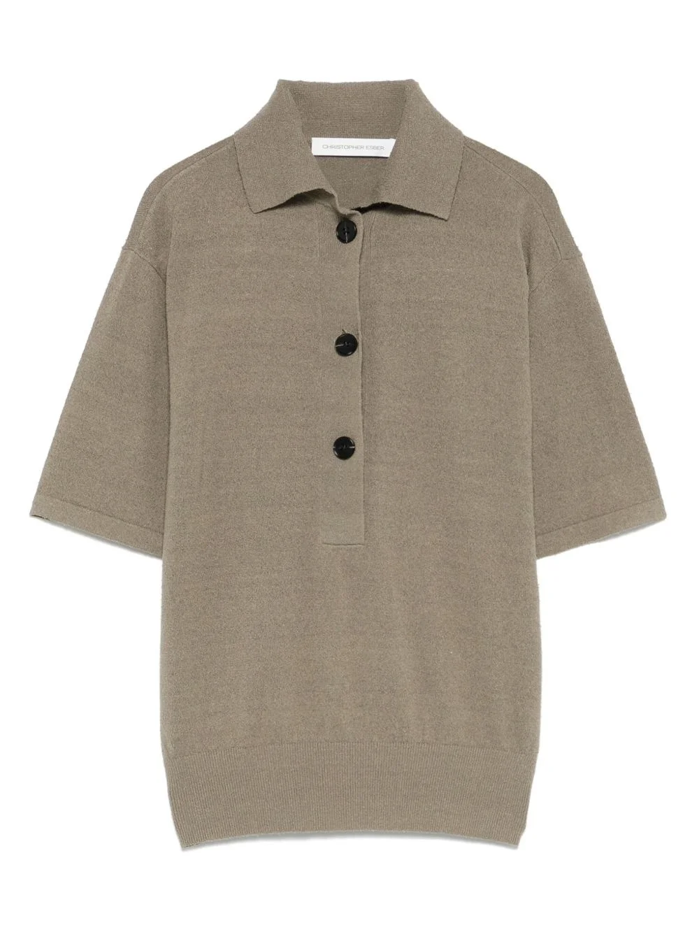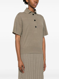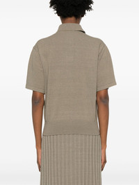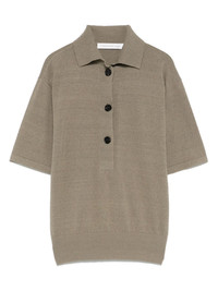 knitted polo top Highlights - Taupe grey - Short front button fastening - Ribbed cuffs and hem - Polo collar - Short sleeves Imported Composition Linen/Flax 48%, Silk 48%, Polyamide 4% SIZE & FIT Model measurements Height 5 ft 11 in(1.81 m) Bust/Chest 33.07 in(84 cm) Hips 36.61 in(93 cm) Waist 24.4 in(62 cm) FittingInformation Designed to be unstructured, offering a loose fit throughout Made with a midweight knit, this piece offers some stretch