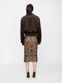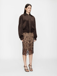 Cut in a textured cord, featuring a double-ended gold zipper and tonal press studs, the boxy silhouette is framed by a ribbed hem and cuff for subtle structure. - Bomber silhouette with ribbed hem and cuff - Double-ended gold zipper closure - Concealed tonal press stud detail - Soft textured velveteen fabrication - Fully lined - Main: 63% Cotton 35% Rayon 2% Spandex - Lining: 100% Viscose Model is 180cm/5'11" and wears size AU 8 (US 4) AU sizing