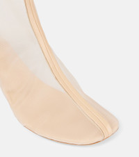 Christopher Esber's sensual cuts and sculptural hardware make for a contemporary twist on minimalism. These knee-high boots are made from mesh with leather trims and have a zipper closure down the back. Product Details - Upper: fabric - Lining: fabric - Sole: leather insole and sole - Toe shape: square toe - Made in Italy - Includes: shoe box, dust bag, extra heel tips - Designer color name: Tan - Item color: beige - Closure: zipped back - Trim: leather - Item number: P01017841 Size & Fit - Fits small to size - we recommend trying one size larger - Slightly narrow - European sizes - 4cm-1.5" heel (size EU 38) - 39cm-15.5" shaft height (size EU 38) - 37cm-14.5" shaft width (size EU 38) - shaft width measured on largest part of boot