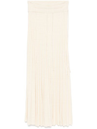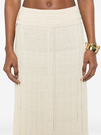 pleated maxi skirt Highlights - Almond beige - Ribbed waistband - Draped strap detailing - Raw-cut hem Imported Composition Silk 48%, Linen/Flax 48%, Polyamide 4% SIZE & FIT Model measurements Height 5 ft 11 in(1.8 m) Bust/Chest 31.49 in(80 cm) Hips 35.82 in(91 cm) Waist 24.8 in(63 cm) FittingInformation This maxi-length skirt is intended to be worn just below the waist The elasticated waist allows for a comfortable fit Made with a midweight knit, this piece offers some stretch