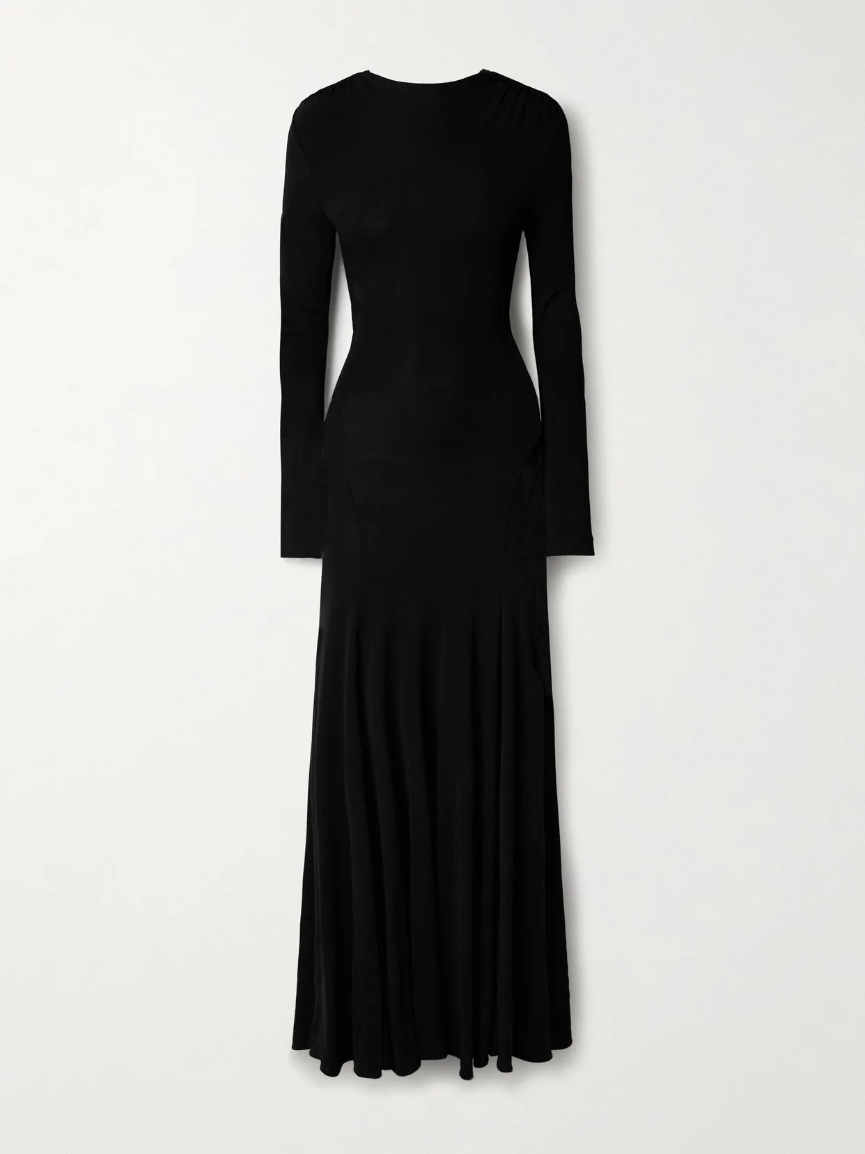 Christopher Esber's 'Maico' gown turns to reveal a low, open back, which is embellished with a large crystal at the center. It's made from smooth stretch-jersey for a close, body-hugging fit and falls to a subtle mermaid hem. Style yours for evening with heels and a clutch.