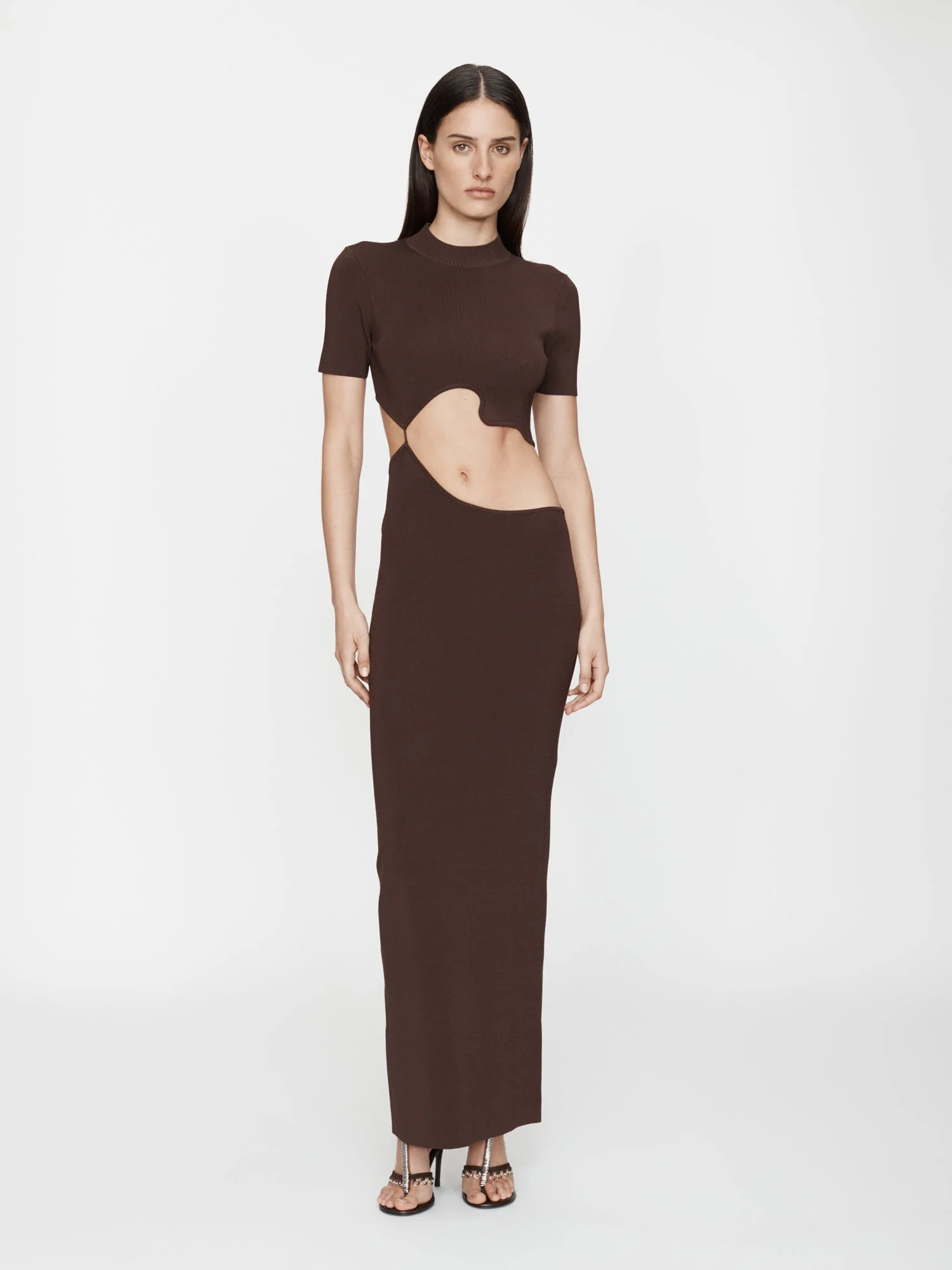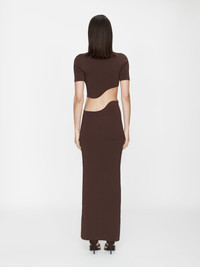 Crafted in rib jersey and contoured to the body through a single fluid cut-out at the waist. Finished with a high crew neckline and short sleeves for a clean, grounded silhouette. Pair with heels for evening or flats for understated daywear. - Rib jersey fabrication - Fluid asymmetric waist cut-out - High crew neckline and short sleeves - Close fit design - Main: 80% Viscose 20% Nylon Model is 179cm/5'10.5" and wears size AU 8 (US 4) AU sizing