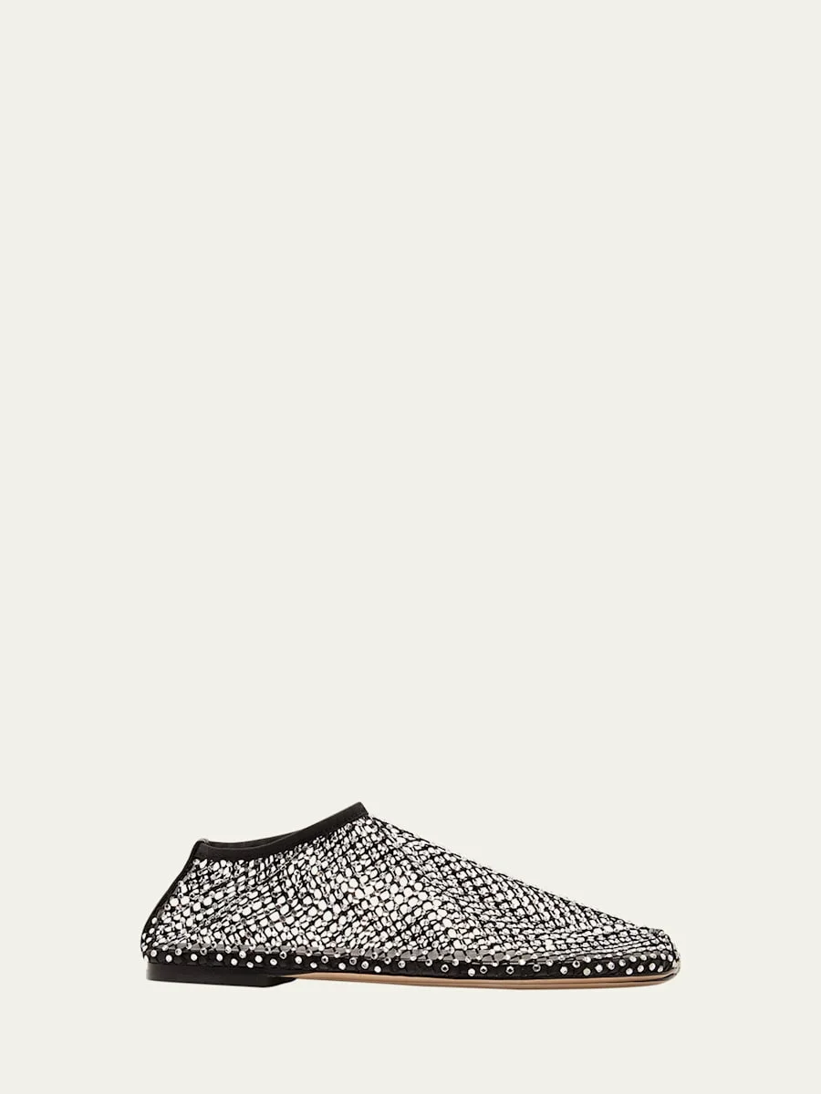 Christopher Esber "Minette" crystal-embellished mesh net ballerina flats Round toe Elastic collar Pull-on style Leather outsole Made in Italy Online Inquiries: BGS21_X6S1T| Store Inquiries: #4922240
