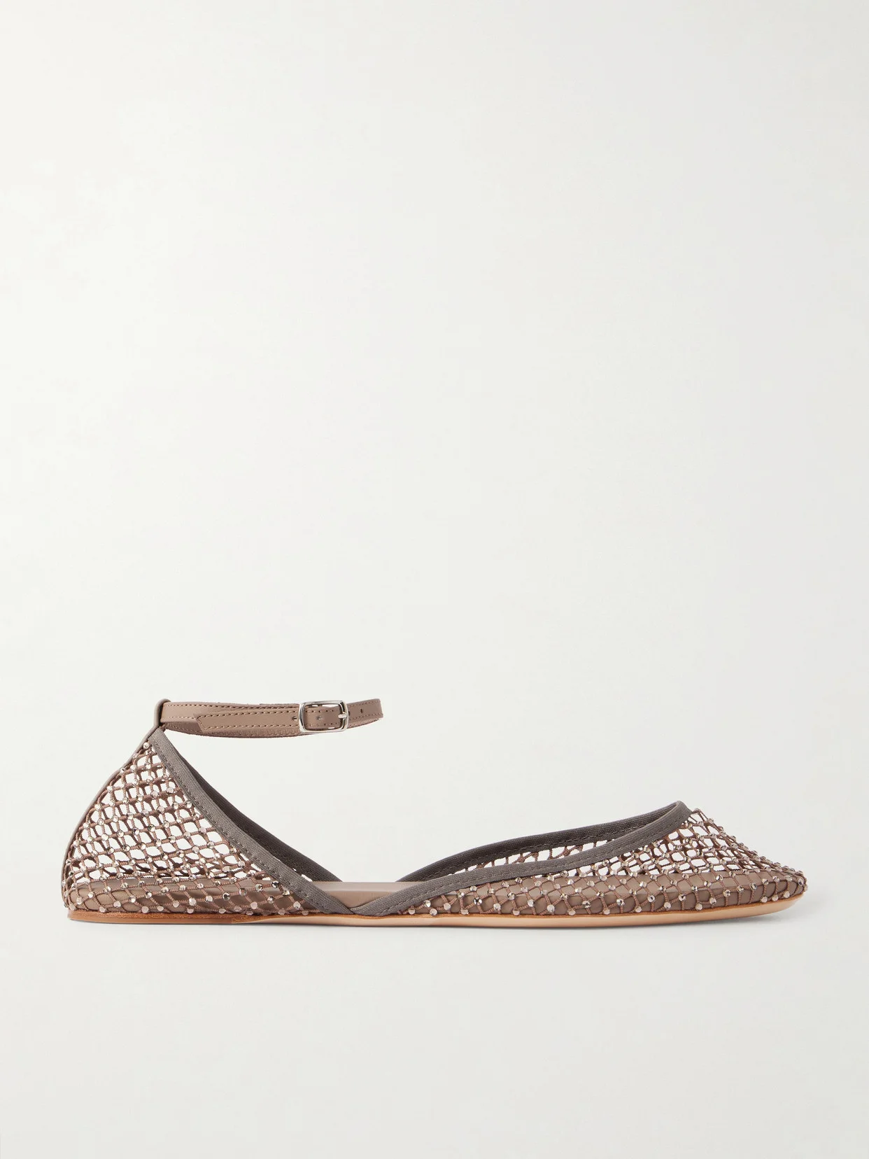 Minette Leather-trimmed Crystal-embellished Mesh Ballet Flats