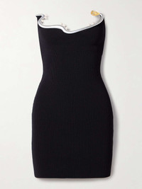EDITORS'NOTES Christopher Esber's dress will surely turn heads - and spark the most important question: where did you get that - when you enter the room. Made from stretchy ribbed-knit for a close, body-hugging fit, it has a strapless neckline adorned with silver-tone hardware. Glowing pearls highlight the curves, while a pretty stone tips the end. SIZE & FIT - Fits true to size, take your normal size - Intended for a very close fit - Particularly short in length - Lightweight, stretchy fabric - Model is 180cm/ 5'11" and is wearing a size Small DETAILS & CARE - Black ribbed-knit - Slips on - 65% viscose, 35% nylon - Dry clean