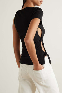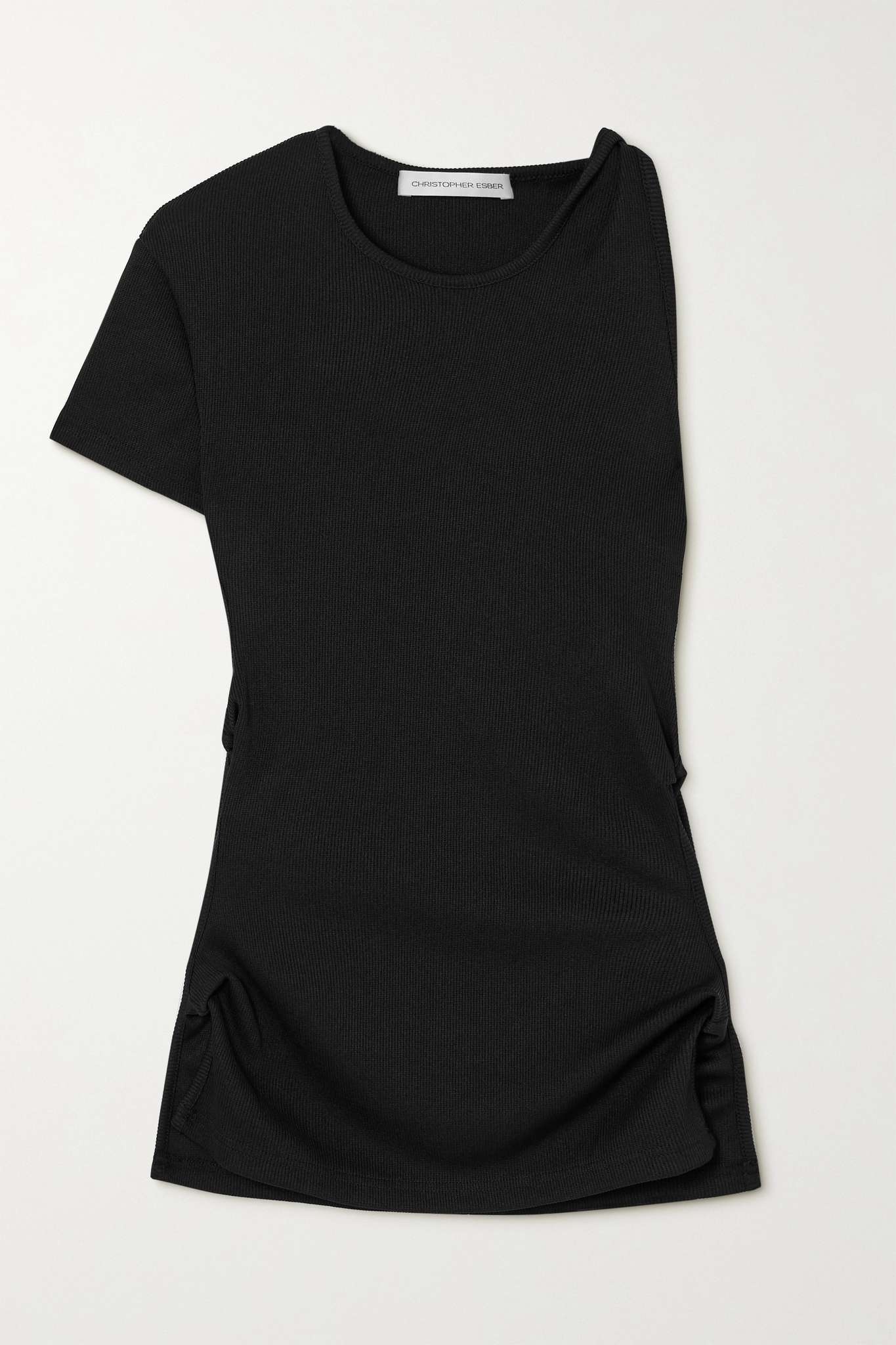 EDITORS'NOTES Christopher Esber loves to play with fabric and construction - this top is twisted to create cutout panels along each side. Designed for a slim fit, it's made from stretch ribbed-knit and has a single sleeve. Style yours with tailored pants and ballet flats. SIZE & FIT - Fits true to size, take your normal size - Designed for a slim fit - Mid-weight, stretchy fabric - Model is 183cm/ 6'0" and is wearing a UK 8 DETAILS & CARE - Black ribbed-knit - Slips on - 96% polyester, 4% spandex - Dry clean
