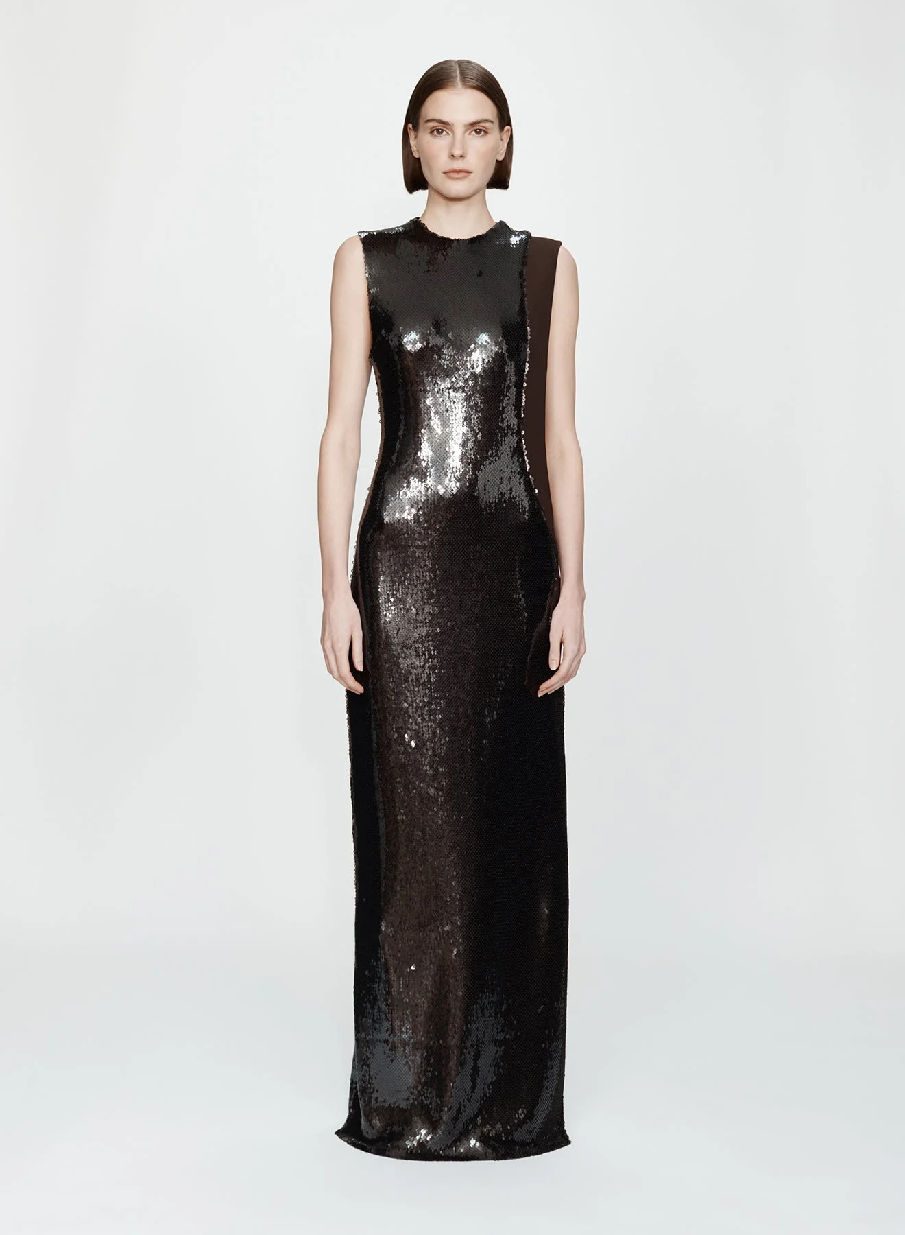 The Opaline Sequin Infinity Cutaway Dress reimagines eveningwear through sculptural precision and light play. A fluid column of sequins is interrupted by curved cutaways, framing the waist and tracing the body’s natural lines. - Sculpted side cutouts with satin binding - High neckline and open back - Full-length column silhouette - Fully lined - Concealed zip closure - Main: 97% Polyester, 3% Spandex Base / 100% PET Sequin - Lining: 90% Polyamide, 10% Elastane Model is 179cm/5’10.5” and wears size AU 8 (US 4) AU sizing