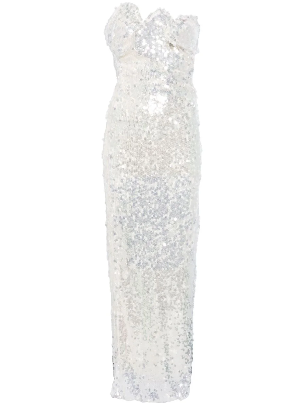 Opaline maxi dress Highlights - White - Concealed side zip fastening - Full lining - Strapless - Sequin embellishment Imported Composition Outer: Polyester 100% Lining: Copper 100%, Nylon 65%, Elastane 35% SIZE & FIT Measurement HIPS 35.43 in(90 cm) LENGTH 51.96 in(132 cm) WAIST 25.98 in(66 cm) FittingInformation Designed for a close fit throughout Made from a midweight non-stretch fabric, this piece offers minimal elasticity when worn