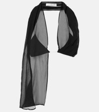 Christopher Esber's sensual cuts and sculptural hardware make for a contemporary twist on minimalism. Crafted from silk georgette, this top features a fluid, scarf-like silhouette and a chain detail that secures the open back. Product Details - Material: 100% silk - Care instructions: dry clean - Made in Vietnam - Designer color name: Black - Item color: black - Details: 100% copper - Item number: P01048205 Size & Fit - True to size - Low back - Cinched waist - Non-stretchy fabric - Cropped - The model seen in the picture is 178cm-5'10" and wearing a size UK 6