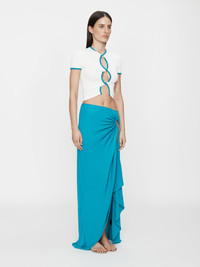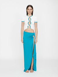 Codes of everyday wear spark curiosity with this contrast bind tee. Fine rib stretches with ease over the body while considered twist cut out detail draws the eye in. - Double twist cut-out - Contrast bind detail - Crew neckline - Luxe stretch rib - 96% Polyester 4% Spandex Model is 180cm/5'11" and wears size AU 8 (US 4) AU sizing