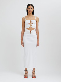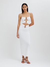 - 72% Polyamide, 28% Elastane - Matte finish - Stretch blend - Midi length - Slim silhouette - Signature brass orbit detailing - Adjustable straps - True to size Sarah is 175cm/5'8.5” & wears size AU 8 (US 4) AU sizing