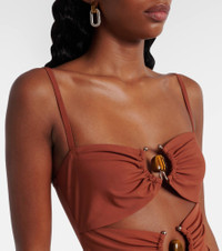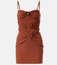 Christopher Esber's sensual cuts and sculptural hardware make for a contemporary twist on minimalism. Made from soft jersey, the Pierced Orbit minidress features frontal cutouts and rounded hardware, creating ruching throughout. Product Details - Material: 72% polyamide, 28% elastane - Care instructions: dry clean - Made in China - Designer color name: Coconut Shell - Item color: brown - Item number: P01033953 Size & Fit - True to size - Fitted - Stretchy fabric - Height of model is 174cm-68.5" and wears a size UK 6