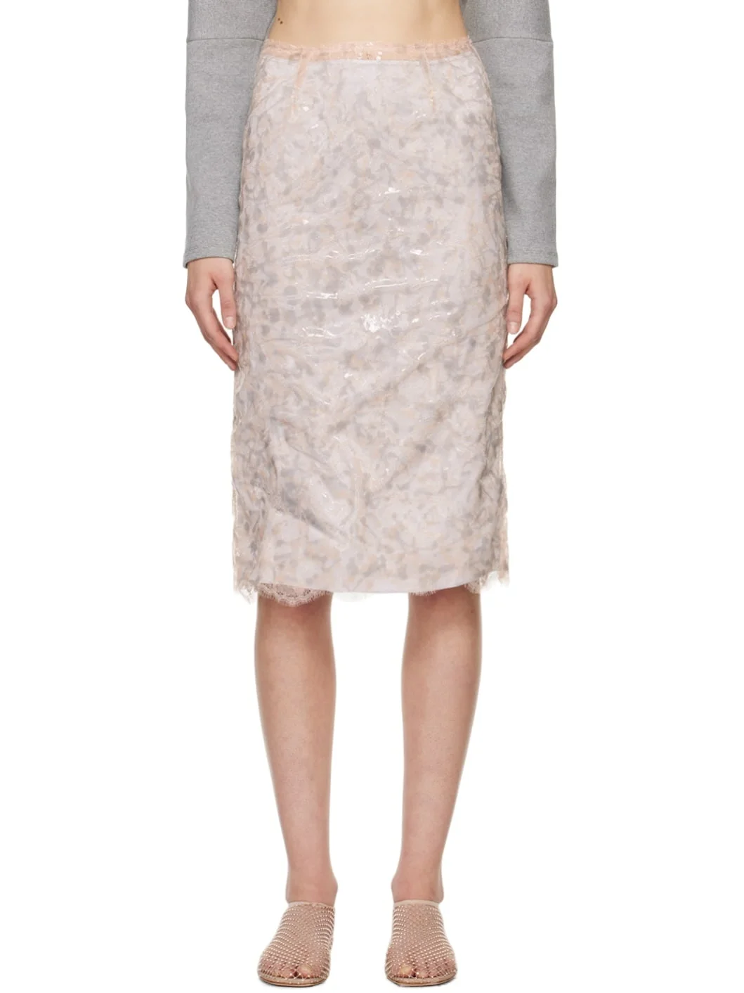 Coated nylon-blend lace skirt. · Scalloped hem · Zip closure at back · Detachable silk satin skirt-style underlay Supplier color: Chalk Body 1: 80% silicone, 18% polyamide, 2% viscose. Body 2: 100% silk. Made in Australia 241311F092003