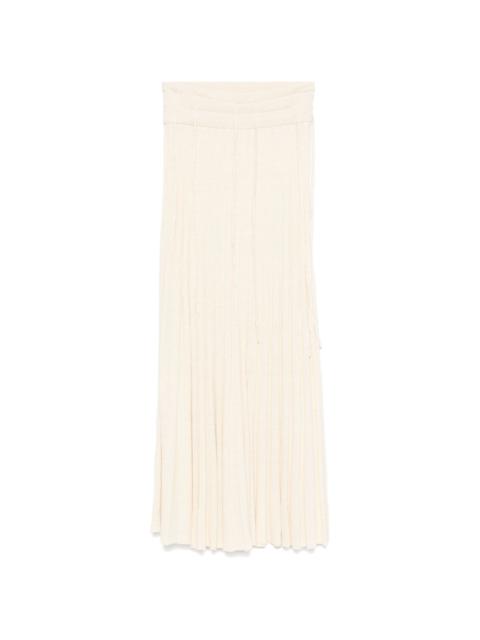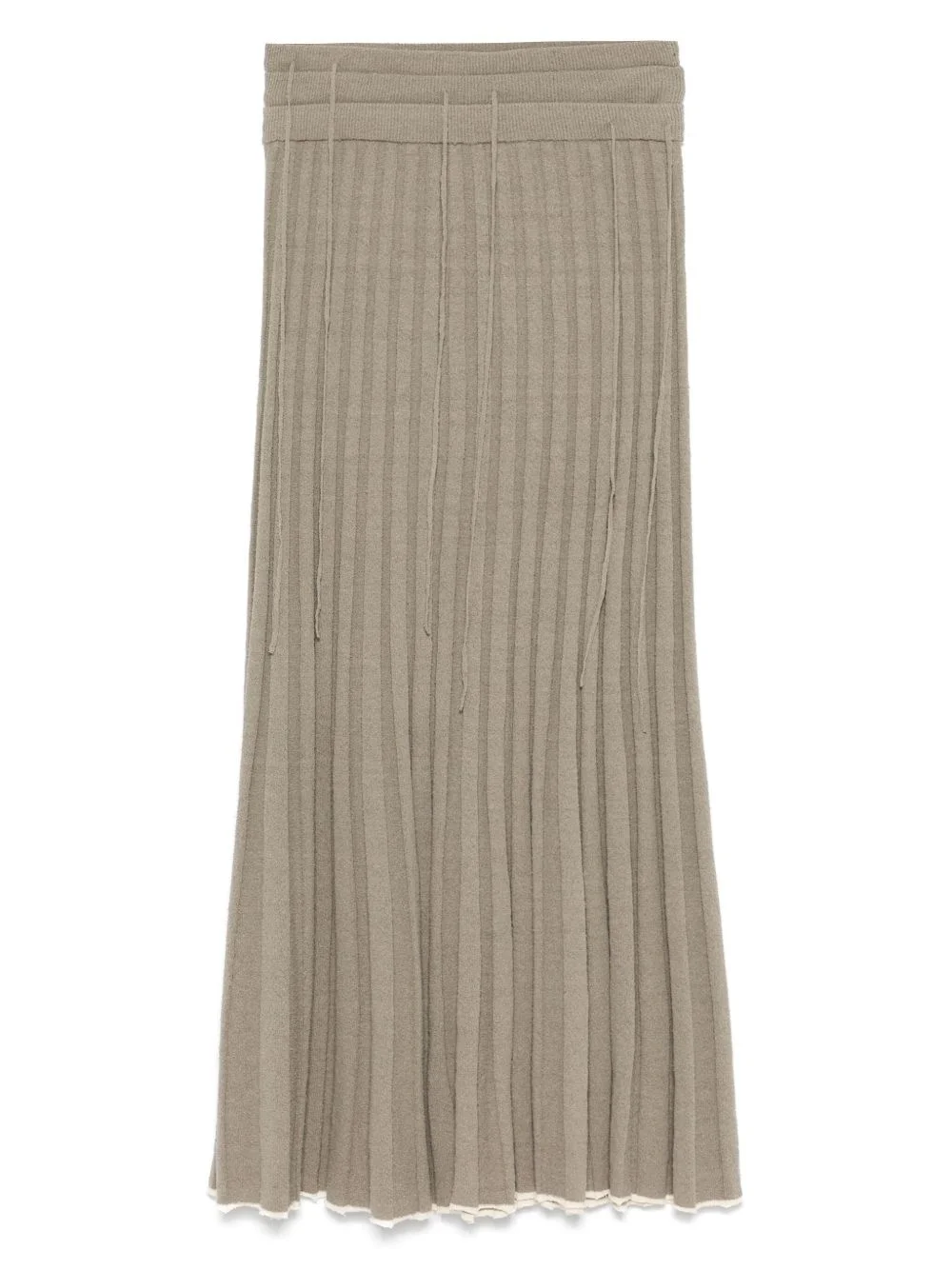 pleated maxi skirt Highlights - Taupe grey - Self-tie fastening - Elasticated waistband - Ribbed detailing Imported Composition Silk 48%, Linen/Flax 48%, Polyamide 4% SIZE & FIT Model measurements Height 5 ft 11 in(1.81 m) Bust/Chest 33.07 in(84 cm) Hips 36.61 in(93 cm) Waist 24.4 in(62 cm) FittingInformation This maxi-length skirt is intended to be worn just below the waist The elasticated waist allows for a comfortable fit Made with a midweight knit, this piece offers some stretch