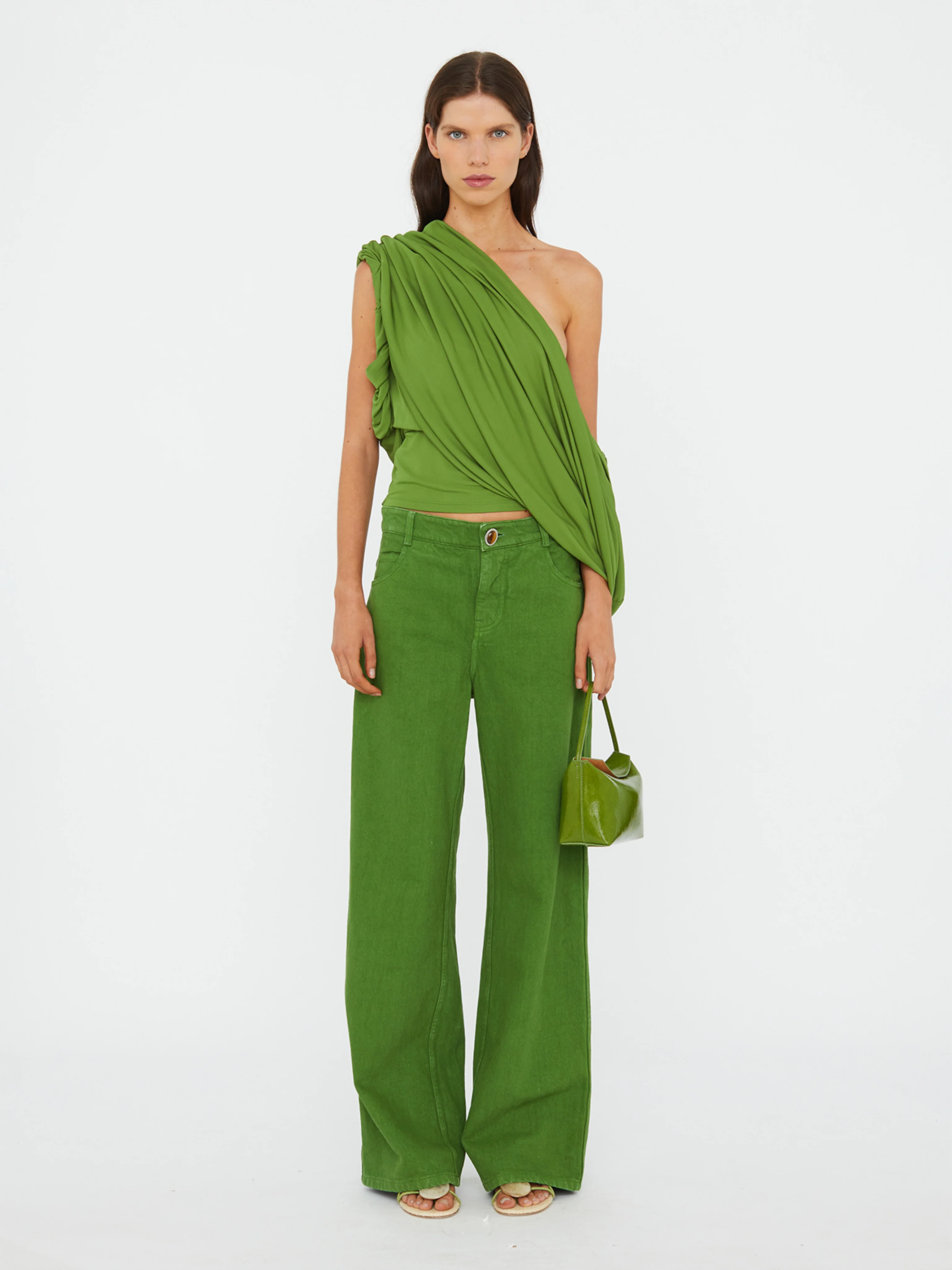 Flattering proportions are reimagined in this slouched wide-leg silhouette, designed to sit low on the waist with a relaxed, elongated fit. Crafted in washed cactus denim for a soft hand feel and natural drape, the jean is finished with Agate Turnlock hardware that enhances strength and protection. Style back with a ’90s-inspired tank for effortless, off-duty dressing. - Wide leg silhouette - Turnlock hardware detail - Elongated length - Side and back pockets - Mid rise - Button closure - Main: 100% Cotton - Hardware: Agate Model is 180cm/5'11" and wears size AU 8 (US 4) AU sizing