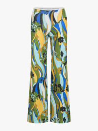 Crafted in fluid stretch jersey, the Acidic Floral Rib Pant features a fitted waist and wide-leg silhouette that moves with ease. A custom hibiscus wave print reimagines vintage surf motifs in saturated shades of citron, azure, and fern. Designed to sit low on the hip, pairs this style with a minimal tank or sheer rib knit for balance. - Fitted waist with wide-leg silhouette - Custom hibiscus wave print - Vintage surf-inspired floral motif - Low-rise fit designed to sit on the hip - Main: 96% Polyester 4% Spandex - Dry Clean Only Model is 180cm/5'11" and wears size AU 8 (US 4) AU sizing