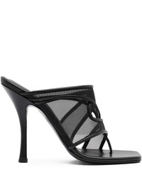 Ringer mesh-panel heeled mules Highlights - Black - Open toe - Mesh panel design - Slender high heel - Crisscross strap detail Imported Composition Lining: Fabric 100%, Calf Leather 100% Sole: Calf Leather 100%, Rubber 100% Outer: Fabric 100%
