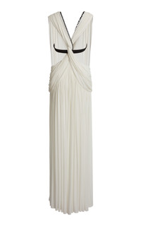 PRODUCT DETAILS - Sleeveless, plunged neck, maxi hem - Concealed zip fastening - Composition: 92% Viscose 8% Elastane - Color: black/white - Dry clean only - Pre-Fall '25