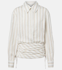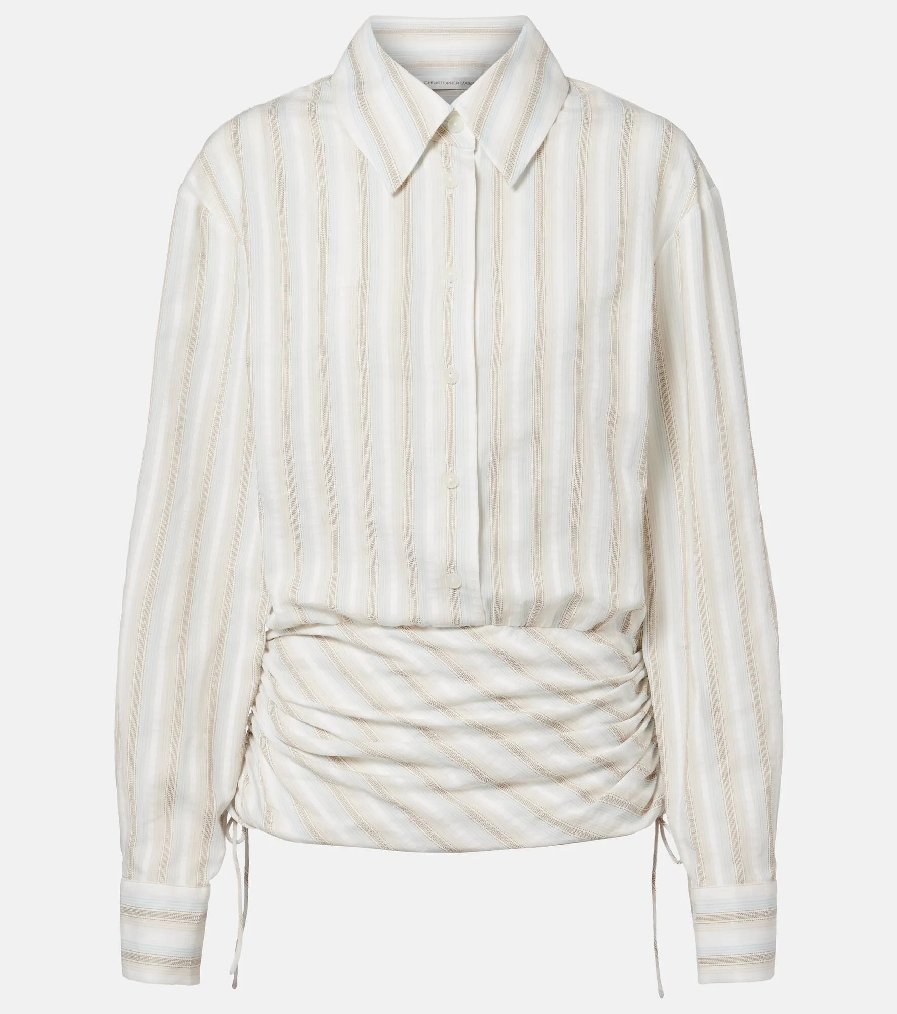 Christopher Esber's sensual cuts and sculptural hardware make for a contemporary twist on minimalism. Crafted from fresh cotton, this striped shirt features a ruched hemline that can be tailored through self-tie strings. Product Details - Material: 100% cotton - Care instructions: hand wash - Made in Vietnam - Color: beige - Designer color name: Terra/ Lago Blue - Item color: white, blue - Collar: classic (Straight point) - Cuff: buttoned - Closure: buttoned front - Self-tie sides - Item number: P01107191 Size & Fit - True to size - Cinched waist - Elasticated waist - Non-stretchy fabric - The model seen in the picture is 178cm-5'10" and wearing a size UK 6