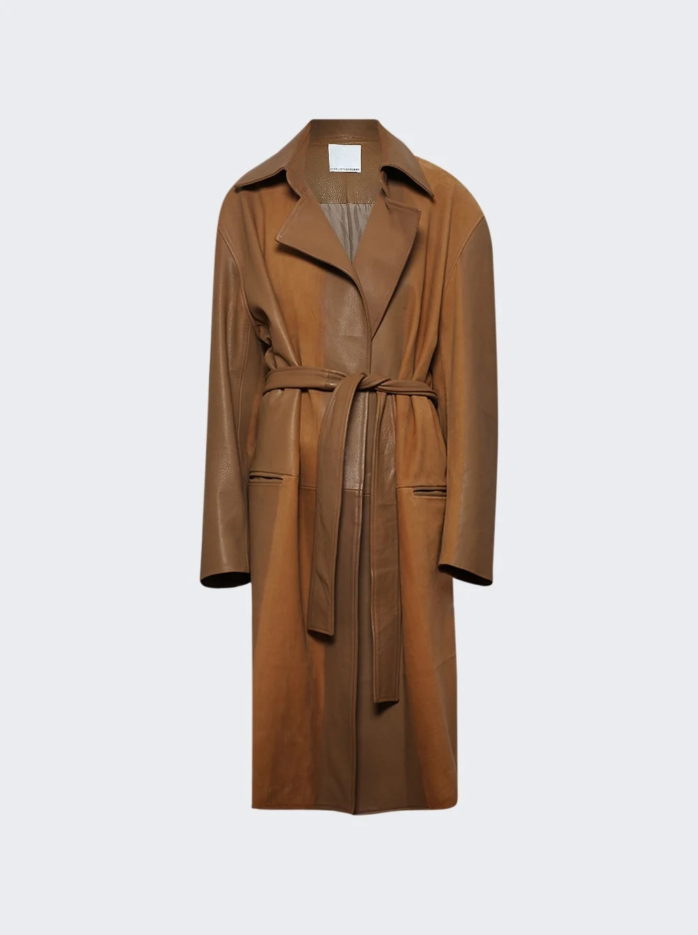 Details - Relaxed fit - Long sleeves - Removable tie belt - Welt pockets on the front - Midi length - Care according to label - Model is 5'9"/175cm and is wearing a size AU8 - Material:100% LAMBSKIN, 100% CUPRO Brand Style: 24046322 Designer/Brand: CHRISTOPHER ESBER