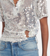 Product Details - Material: 100% polyester - Care instructions: dry clean - Made in China - Designer color name: Glisten Clear - Trim: 100% copper - Item number: P01000830 Size & Fit - True to size - Cinched waist - Non-stretchy fabric - Slightly cropped - The model seen in the picture is 178cm-5'10" and wearing a size UK 6