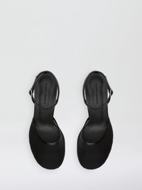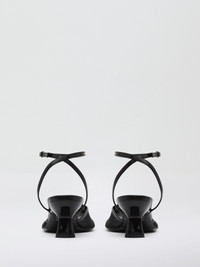 A dimensional sheer mesh heel shaped by softened lines. Taking cue from the classic mary-jane silhouette, its rounded toe is traced with patent leather trims. - Crafted in Italy - Heel Height: 75mm - Mesh netting with patent leather trim - Buckle-fastening cross ankle straps - Upper: 100% Nylon - Trim: 100% Leather Calf - Lining: 100% Leather Cow Nappa - Sole: 100% Leather Cow Footwear is in IT sizing