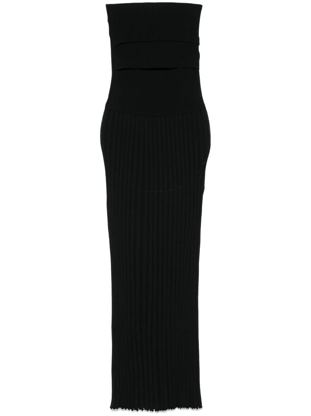 Slash maxi dress Highlights - Black - Stretch-design - Ribbed knit - Bandeau style - Strapless - Cut-out detailing - Unlined - Lettuce hem - Long length Imported Composition Viscose 65%, Nylon 35% SIZE & FIT Model measurements Height 5 ft 11 in(1.8 m) Bust/Chest 32.67 in(83 cm) Hips 36.22 in(92 cm) Waist 24.4 in(62 cm) FittingInformation Designed for a close fit throughout Made with a midweight knit, this piece offers some stretch
