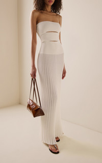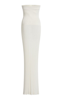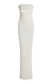PRODUCT DETAILS - Strapless, slashed bodice, maxi hem - Concealed zip fastening - Composition: 80% Viscose 20% Nylon - Color: white - Dry clean only - Pre-Fall '25