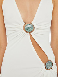 stone cascade tank midi dress Highlights - White - Stone detail - V-neck - Sleeveless - Side slit - Cut-out detail Imported Composition Brass 100%, Natural Stone 100%, Polyester 96%, Spandex/Elastane 4% Washing instructions Read Manufacturer Guidelines