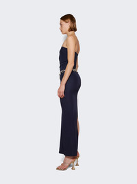 Strapless Ruche Chain Dress Navy