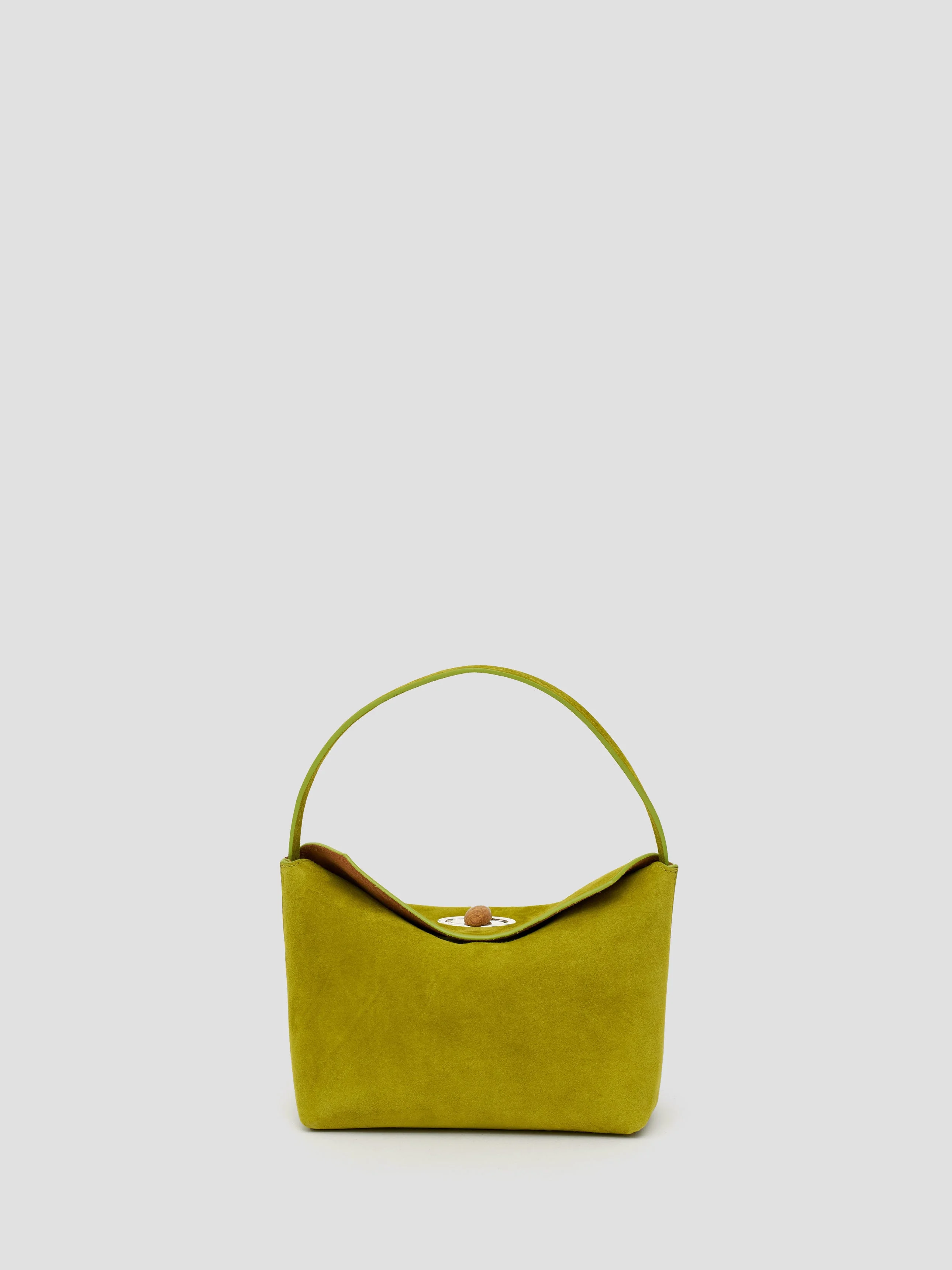 A slouchy mini hobo bag crafted in smoothly textured, Italian sourced goat suede. The fine strap can be slung over the shoulder or carried by hand. Anchored by a Black Agate turnlock hardware that enhances strength and protection. - Softly structured goat suede - Magnetic turnlock hardware - Fine fixed shoulder strap - Silver embossed logo patch interior - Featured stone: Black Agate - enhances strength and protection - 100% goatskin, lining: 100% cow leather, hardware: 100% brass with natural stone - Dimensions: Width - 18cm Height- 11cm Depth - 9cm Shoulder drop - 14cm