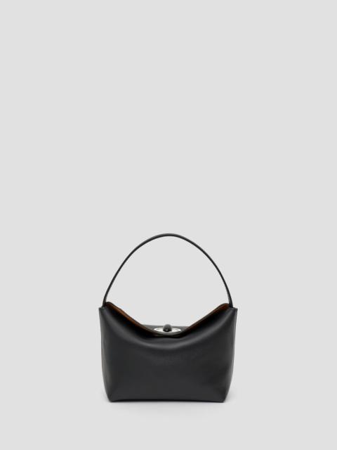 A slouchy shoulder hobo bag crafted in smoothly textured, Italian suede. Its fine strap can be slung over the shoulder or carried by hand. Anchored by a Black Agate turnlock hardware that enhances strength and protection. - Softly structured suede - Magnetic turnlock hardware - Fine fixed shoulder strap - Silver embossed logo patch interior - Featured stone: Black Agate - Outer: 100% goatskin, Lining: 100% cow leather, Hardware: 100% brass with natural stone - Dimensions: Width - 26cm Height- 20cm Depth - 14cm Shoulder drop - 15cm