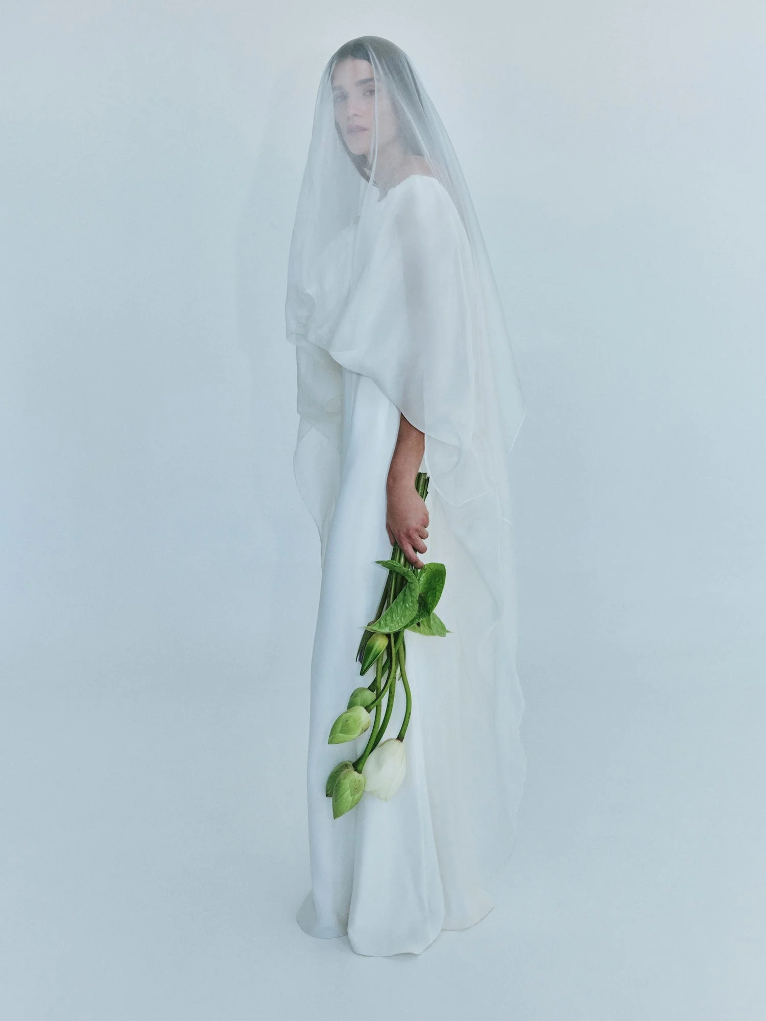 A gown that embodies timeless beauty, in convergence of past and present, merging tradition with modernity. Heavy faille is overlaid with ultra fine silk organza to sculpt the signature Christopher Esber wedding dress. Finished with a generously volumed silk hem and off-the-shoulder neckline. - Generously volumed hem - Maxi silhouette - Volumed hem - Off-the-shoulder neckline - True to size Claire is 179cm/5'10.5" and wears size AU 8 (US 4) AU sizing