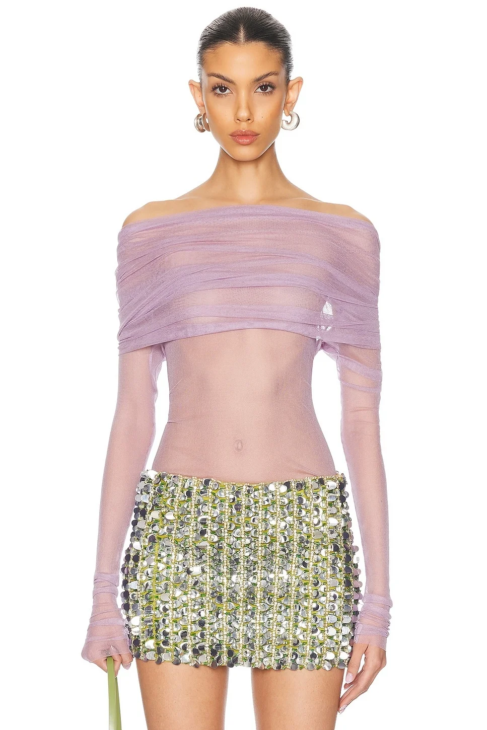 Details - 100% silk - Made in China - Dry clean only - Pull-on styling - Foldover styling at neckline - Sheer mesh fabric - Garment is intentionally sheer, undergarments will show through - Our Style No. CHRF-WS190 - Manufacturer Style No. 22041008