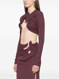 Venus top Highlights - Mahogany brown - Stretch-jersey - Mesh panelling - Concealed rear zip fastening - Sculptural wire wave - Asymmetric neck - Long sleeves - Ruched detailing - Stud embellishment - Cropped Imported Composition Polyamide 90%, Spandex/Elastane 10% Trims: Copper 100% SIZE & FIT Model measurements Height 5 ft 10 in(1.77 m) Bust/Chest 28.74 in(73 cm) Hips 33.85 in(86 cm) Waist 23.22 in(59 cm) FittingInformation Designed for a close fit throughout Made from a midweight stretch fabric, this piece offers elasticity and flexibility when worn